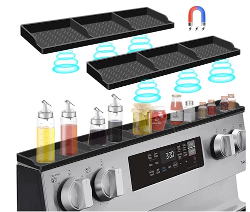 Store items you use regularly while cooking — like spices, condiments, oils, and more — on this stove shelf so they’re always within reach. It has eight sizable magnets that’ll allow you to secure it on the back of your appliance. And its silicone design makes it heat resistant.