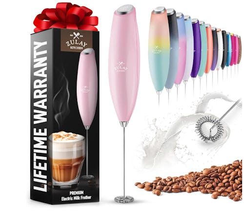 Make barista-quality drinks at home with this milk frother — it features 25 stainless steel rings that’ll whisk up a rich foam in seconds. The device is powered by AA batteries, and the sleek body is comfortable to maneuver.