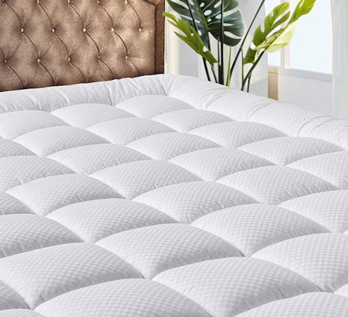 This protective mattress topper features a top layer that’s breathable, and it’s filled with microfiber filling for extra comfort as you sleep. It’s designed to stretch over mattresses that are up to 21 inches thick, and the quilted design helps it hold its shape in the long run. It comes in plenty of sizes and colors in the listing.