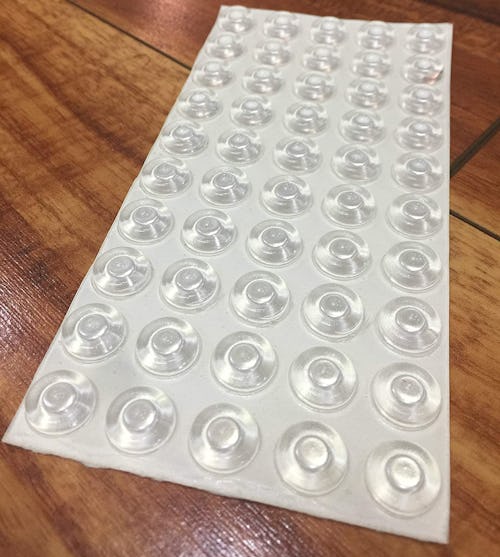 These clear bumpers are designed to give cabinet doors and drawers a soft closure so you don't have to listen to them banging every time you need something. They're useful for a lot more than that, though. Put them on the back of pictures so they don't hit the wall — or use them under glass tabletops, cutting boards, and anything else that could use a soft bumper. You'll be glad there are 100 of them because they stick on well and are easy to remove.