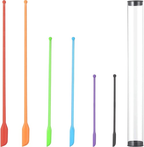 When you get to the bottom of expensive lotion, makeup, or paint containers, what do you do? Give up on it? Turn it over and shake? Wish someone would invent better packaging? Nope — just purchase these. They're tiny versions of the spatulas you use to get batter out of bowls in the kitchen. Just dip one into an almost empty bottle and pull out the last drops of that expensive product. There are three different sizes in this package to suit various containers.