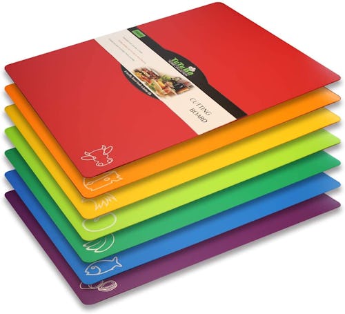 Both color-coded and with icons on the corners, these durable cutting mats make preventing cross-contamination and promoting food safety easy. The sturdy plastic has a non-slip back and is dishwasher-safe.