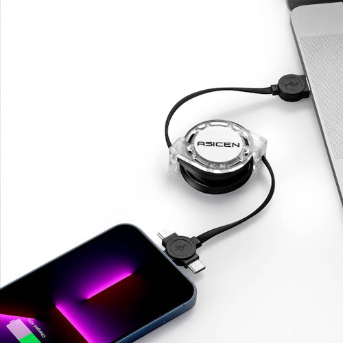 Handy retractable charging cables with lightning, micro-USB, & type-C connectors
