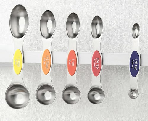 Home and professional chefs alike can appreciate these measuring spoons. They’re made from rust-resistant stainless steel, with engraved measurements that won’t wear away over time. The best part? A magnet in the center of each one keeps them nested together in storage, making it way harder to lose them.