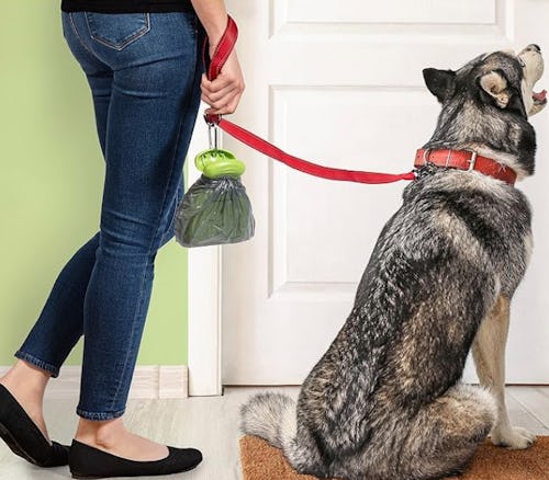 Unlike some pooper scoopers, this one clips onto your leash so that you don’t have to lug it around separately. It’s suitable for use with all dog breeds, as the collapsible poop container expands to fit waste of nearly any size — and there’s even a bonus compartment where you can keep a roll of poop bags.