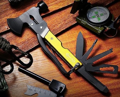 Don’t leave for that camping trip until you’ve packed this multitool. It combines 14 handy tools into one, including an axe, knife, pliers, saw, hammer, can opener, and more. And if you’re worried about durability? Not a problem, as it’s made from tough stainless steel that’s built to last.