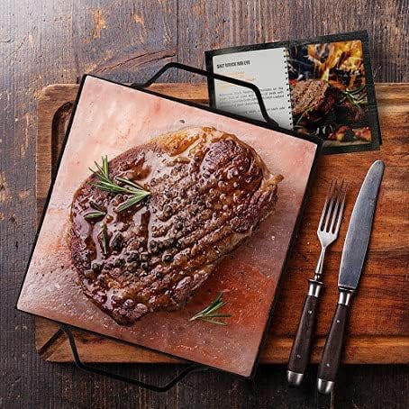 Not only is this serving tray made from real Himalayan pink salt, but serving meals on it also infuses them with a deliciously salty hint. It works just as well when serving cold charcuterie as it does a hot steak — and the included holder is made from tough iron that’s built to last.
