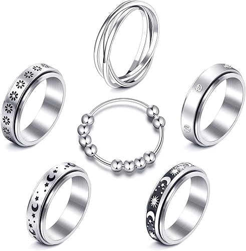 If you feel a little less stressed and a little more focused when you have a distraction — stock up on these fidget rings. The set includes a beaded ring, an interlocking ring, and a variety of spinners to keep your fingers busy in the most unobtrusive way possible. They come in multiple sizes, making it easy to get a comfortable fit.