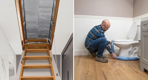 “Another issue is air leaks, especially around windows, doors, and in the attic. These leaks aren’t always obvious, but they can make your HVAC system work harder and drive up your energy bills,” says Boyko. It’s always smart to put some insulation between your attic and the area of your home that you want heated and cooled. This insulation cover goes on the attic stairway, preventing air from leaking through your attic door.