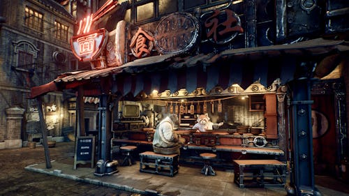 At its core, F.I.S.T. tells the story of Rayton, an anthropomorphic rabbit who wields a colossal mechanical fist. The story is set in the beautifully dystopian world of Torch City — a neon-drenched noir-ish metropolis oppressed by a robotic regime. There’s no humans here, either, just a cavalcade of anthropomorphic animals with big personalities and big problems.