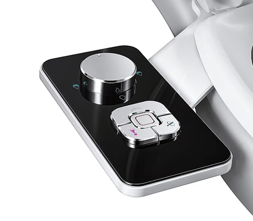 Whereas some bidets can cost hundreds of dollars, this one is available for less than the price of lunch out with friends. The spray nozzle retracts when not in use to help keep it clean — and a control panel on the side lets you adjust the sprayer angle as well as the water pressure.