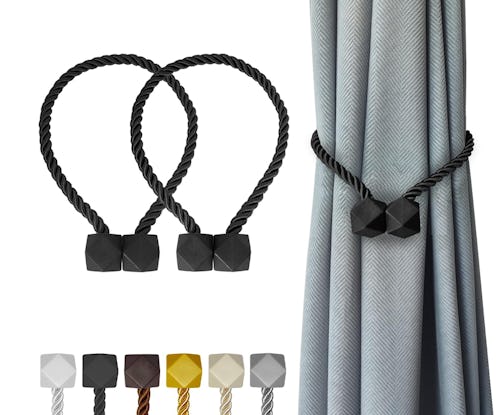 Keep your curtains stylishly pulled back with these ties. The chic geometric magnets at both ends make it easy to secure them together — and there’s no need for any drilling in order to install a mounted hook in order to use them. Choose from seven colors: gold, beige, black, and more.