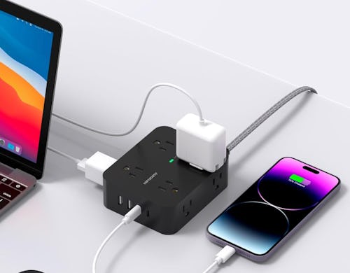 Not only does this power strip feature a square design to help save space, but it also features two USB as well as two type-C ports. Built-in surge protection also helps shield your gadgets in the event of an electrical spike. One reviewer wrote, “This power strip is perfect for any room. Just right size. It's easier to hide than other power strips.”