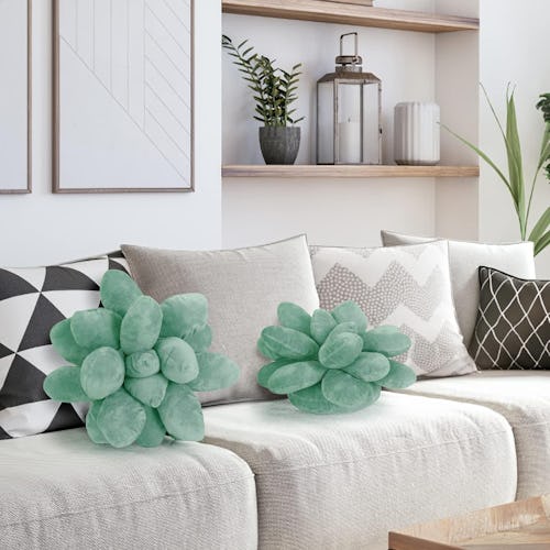 Accenting your couch with a few throw pillows is an easy way to add some color and personality to a room. These 3D succulent pillows are a great option. They’re soft and cuddly, with a cool dimensional look that makes them more interesting than your typical pillow. They also add a nice pop of green to a more neutral couch and are especially great in homes with other plants.