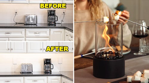 These flameless candles have the look of a real candle but are much safer — there’s no open flame or smoke, since these are battery powered. The flame still has a flickering look that makes them surprisingly realistic, and little fairy lights are strung around them to make them feel extra magical. Even better? These come with a remote control that allows you to set a timer, dim them, or power them on and off all at once.