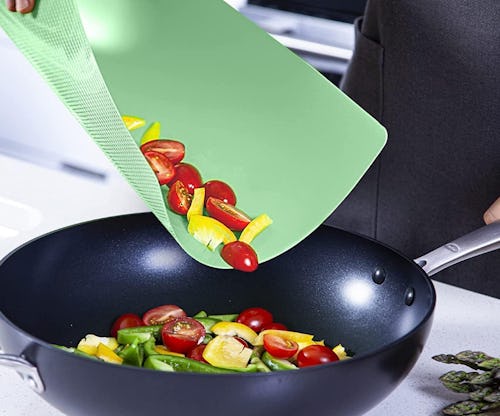 Cross contamination when cooking can be incredibly dangerous. Luckily, these cutting boards help prevent it by feating a label in the corner that tells you whether they’re meant for preparing vegetables, fish, beef, or fruit. And since they’re flexible, you can even fold them up into a funnel to transfer ingredients without making a mess.