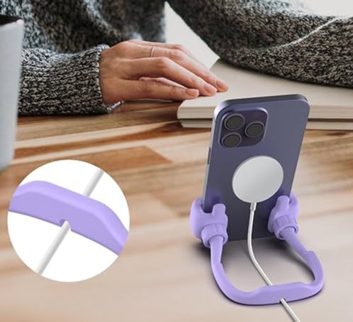 Don’t hold your phone up when watching videos or FaceTiming. Instead, pop it into this stand. It can hold up your phone vertically as well as horizontally — and a small gap in the back band allows you to thread a charger cable through if needed. Choose from seven different color combinations.