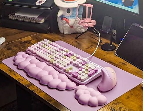 A memory foam keyboard & wrist rest shaped like puffy clouds