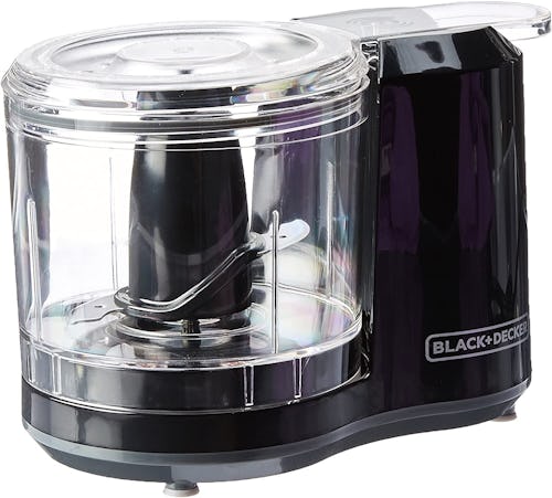 This small food chopper takes up little space but will chop and mince like a champ. It has a 1.5-cup capacity and features sharp stainless steel blades powered by a strong motor to chop vegetables, whip up hummus, or create salsa. Best of all, it’s incredibly easy to use and control with a one-touch pulse feature.