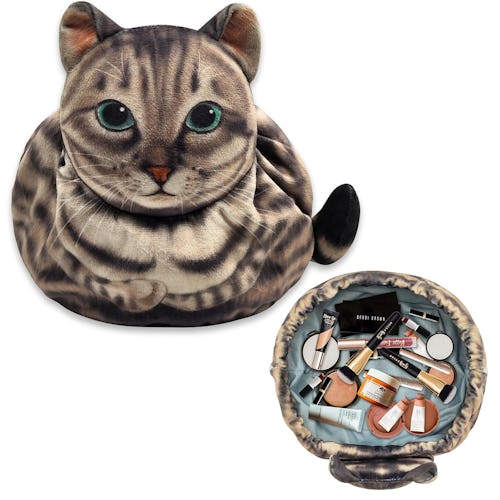 Travel in style with your toiletries and cosmetics with this convenient drawstring bag. Open it up and be able to see all your supplies with ease. It’s backed by a 4.6-star overall rating and comes in lots of cat types as well as other animals like a red panda.