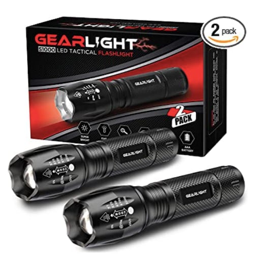 These flashlights have so many great specs, it’s no wonder they have 63,000 five-star ratings. They’re constructed from military-grade aluminum that’s durable enough to withstand a 10-foot drop and they’re water-resistant. They have five modes and a zoomable beam so you can get pinpoint precision or a wider beam.