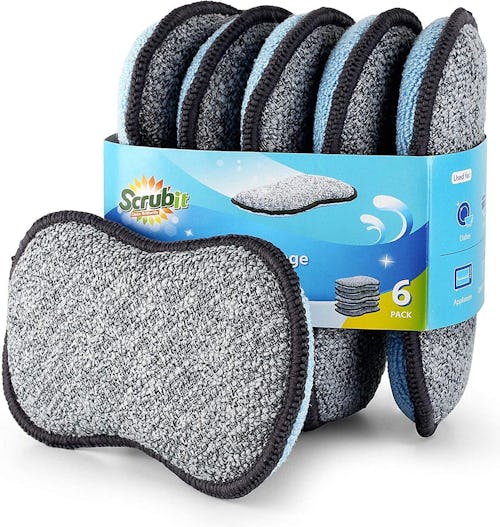 Designed with dual-sides, these sponges can be used to clean various surfaces and areas around your home from pots and pans to countertops to toilets. One side features a durable scrubber, and the other is designed with soft microfiber for a variety of uses. Plus, you can toss them in your washing machine when they get dirty.