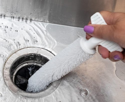 Its long length and heavy-duty bristles with a wide brush head allows this garbage disposal brush to clean residue, grime, and any build-up in your garbage disposal, which can help it work more efficiently and reduce odor. It’s designed with an ergonomic, T-shaped handle so it’s easy to hold and maneuver. One reviewer wrote, “Using this long-handled brush beats putting your hands into a garbage disposal with a scrubber or scouring pad to clean it.”
