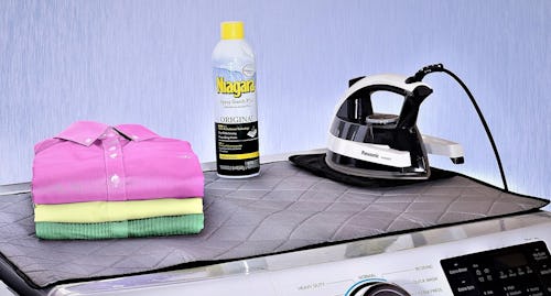 You don’t need to have a bulky ironing board that takes up too much space in your home. This ironing mat can transform any flat surface into an ironing board and is easy to fold and store when it’s not in use. It’s magnetic, so it’s perfect to use on top of your washer or dryer. It’s also designed with a slip-resistant, textured surface to prevent it from sliding. Plus, it has a silicone iron rest so you have a safe place to set down your iron.