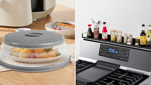This microwave mat and food cover set is designed to prevent splatter and spills from getting all over your microwave. The silicone mat protects the bottom of your microwave, and it can also be used as a trivet, a pot holder, a spoon rest, and a jar opener. The food cover is designed with a handle so it’s easy to lift, vents to release steam, and has an adjustable height. It can also double as a colander and collapse for easy storage.