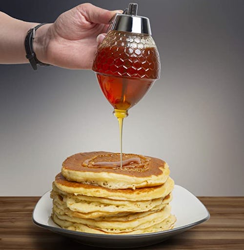 A glass honey dispenser that helps keep your table clean from gooey drips