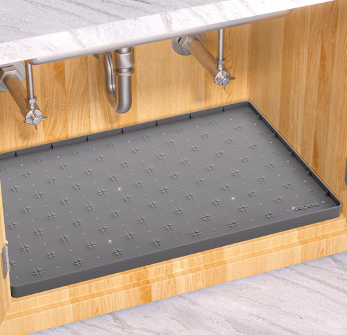 Protect your under-sink cabinets from spills, leaks, and other damage by popping in one of these silicone under-sink mats. It has high walls to hold a shocking 3.8 gallons of liquid. Choose from a variety of sizes and colors in the listing.