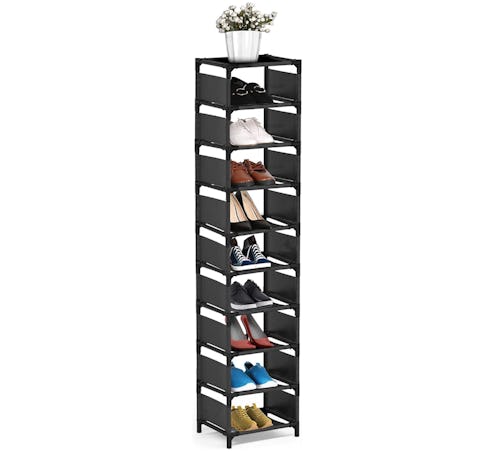 Banish the pile of shoes by the door and instead try this vertical rack, which has a space-saving design that can hold up to 15 pairs. It has an easy-to-assemble construction that doesn’t require any tools. Plus it comes in your choice of three sleek colors.