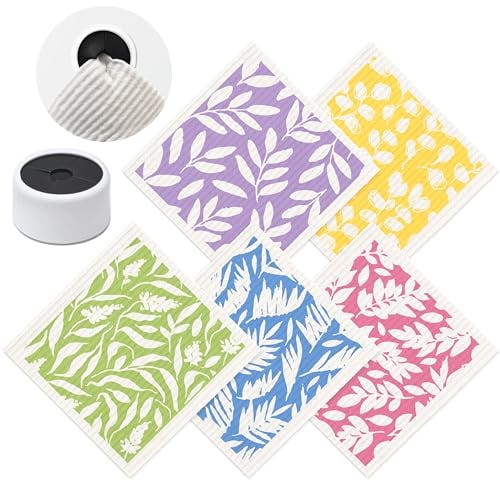 SUPERSCANDI Swedish Dishcloths With 100% Recycled Bioplastic Hanger, Reusable Paper Towels Washable 100 Times, Biodegradable, Super Absorbent Cleaning Cloth Dish Towel For Kitchen, 5-Pack Flower Print