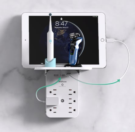 After using this space-saving outlet extender, you’ll wonder how you ever managed with just one outlet. With three convenient charging ports and six spare outlets for electronics, grooming appliances, or even more chargers, this extender is a great way to make sure everything can charge. There’s also a convenient shelf on top which not only adds storage but can be a great place for iPads and phones to rest as they power up.