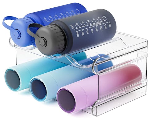 If you’ve got a ton of water bottles, keep them all together in this clever water bottle organizer. Available in sets of two, three, or four, each organizer can stack on top of the other to use up vertical space. With an antislip groove, you can feel confident they’ll stay in place. This set of two will hold up to six bottles, but can also be used to help display wine bottles.