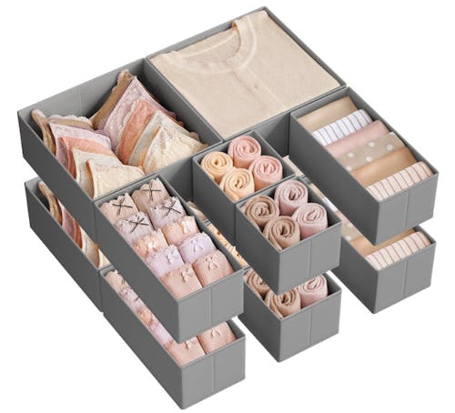 While this drawer organizer set is great for undies, leggings, and small items, you can use it to organize just about anything. This set of 12 includes three sizes of organizers, all of which fit neatly in your drawer. Available in five colors, they can even fold down when not in use, saving space.