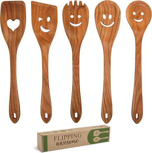 Add a little smile (literally) to your kitchen with this five-pack of cooking tools. Made of solid cherry wood, the set includes five utensils in various shapes, each with a cartoonish face or a heart cutout in the center. Perfectly sized at just under 12 inches long, they’re ideal for stirring, scraping, scooping, mixing, and more.
