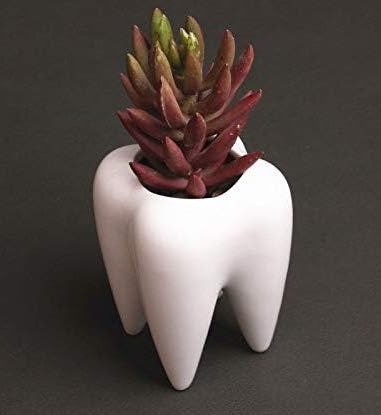 A quirky tooth-shaped holder for smaller plants