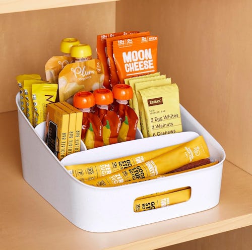 An adjustable snack bin to keep your cabinet organized
