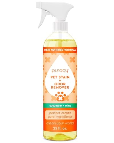 Puracy Natural Pet Stain and Odor Remover Plant-Powered Professional Pet Urine Odor Eliminator with Natural Enzymes Safe and Effective Carpet Pet Stain Remover and Cleaner, Cucumber & Mint, 25oz