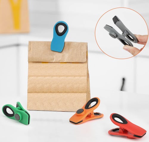 Keep those open snack bags shut with help from these chip clips. Their rubber-ribbed teeth create a tight seal, helping keep your snacks fresher for longer. Plus, a magnet in the back of each one lets you attach them to your fridge so that they’re always within reach when you need them.