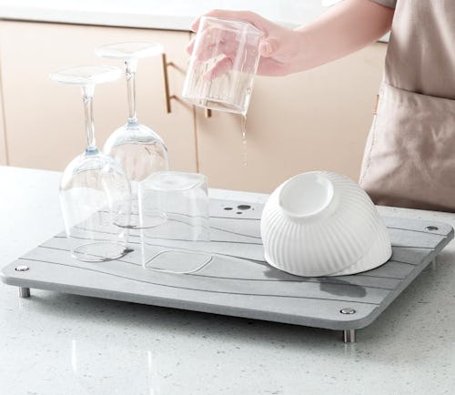 Let your dishes dry in style on top of this mat. Feet on the bottom give it an upscale look — and since it’s made with diatomaceous earth, you can rest assured that it’s just as absorbent as it is quick-drying. “Keeps my counter nice and dry,” wrote one reviewer. “Catches the water great and looks nice too.”