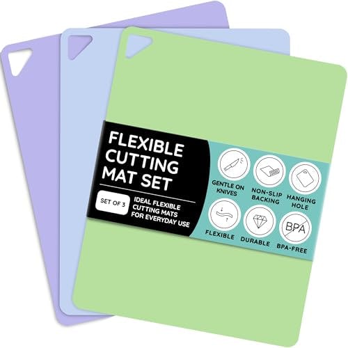 Since each of the three flexible cutting boards that come in this pack is a different color, you’ll have an easy time remembering which you’ve designated for fruit, meat, and fish. All three will be gentle on knives but have a textured back so that it doesn’t budge as you’re slicing. They measure 15 by 12 inches.