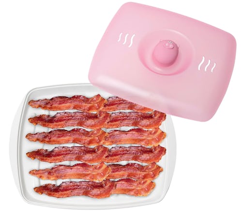 A Microwave Bacon Tray With A Splatter-Preventing Lid