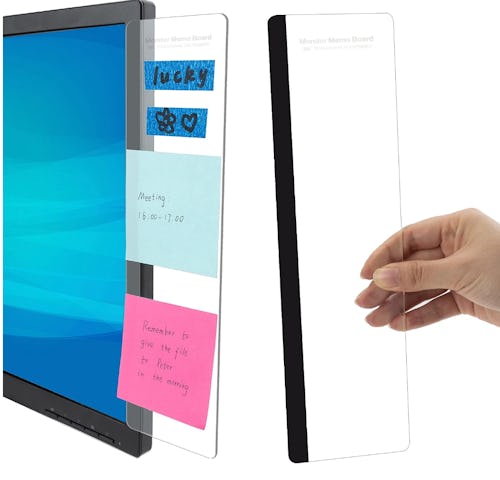 Move the sticky notes that are covering your desk onto this pair of monitor memo boards so that they’re out of your way yet impossible to ignore. They adhere to the side of your screen and give you space to post notes or keep important papers.