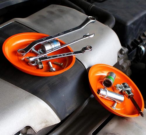 These magnetic trays are just the right size to hold those nuts and bolts that always seem to disappear when you need them most. Attach the pair anywhere (even upside on the surface above you) so you have easy reach. Since the bottom magnet has a soft rubber coating, it won’t create any scratches.
