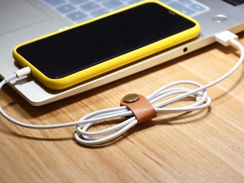 Who said office supplies can’t be chic? These cord organizers certainly are thanks to their genuine leather bands and brass-tone buttons. They can completely transform an extra-long cord so that it only takes up a few inches of your desk space instead. They come in a set of five.