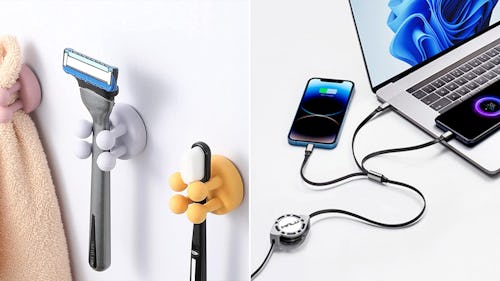 These six toothbrush holders are strong enough to hold a ton of bathroom essentials. Your towel and razor can be held by their silicone arms, or you can use them in other parts of your home to hold your keys and AirPods. Just peel off the sticky backing and adhere them wherever you want. They come in tons of colors in the listing.