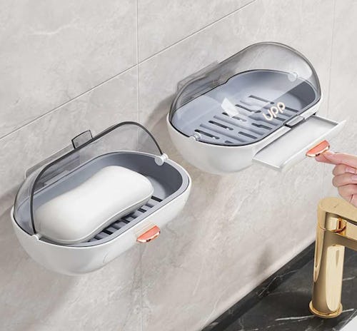 Mount this pair of soap dishes on the wall of your shower or tub (adhesive stickers are included), and place your favorite bar of soap in them. This way, they always have a designated storage spot. When not in use, there’s a lid to keep water splashes away so the bars aren’t constantly wet, helping them last longer.