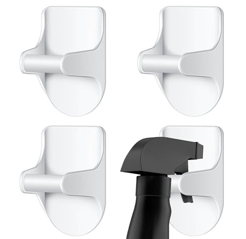 Stick these four plastic holders on the wall, inside of cabinets, or wherever else you keep your cleaning supplies, then use them to hold spray bottles for organization. Some reviewers use them for other hanging items, too, like umbrellas, razors, etc. Each one supports up to five pounds.